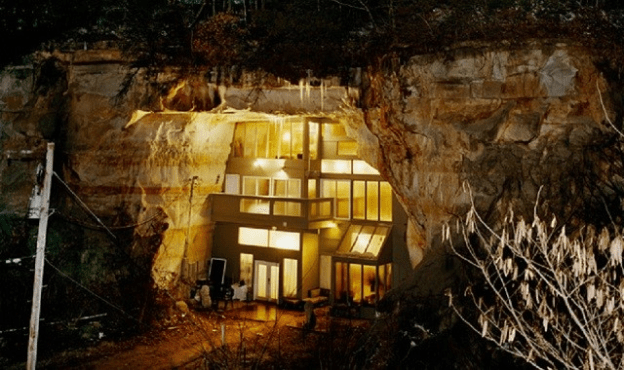 And eco-awareness that those cave systems have to offer. This magnificent oddity was built in a Missouri sandstone cave. The house is an amalgamation of wood, rock from the cave and glass. It is famous for being a concert hall back in the day but is